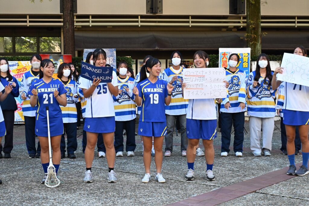 ラクロス部女子は、11/1(土)に行われる関西学生ファイナル決勝にむけて、アメリカンフットボール部は11/9(日)立命館大学戦に向けて、両部関西王者をかけた戦いに向けて10月の体育会壮行会を無事開催することができました。
